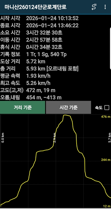 ▲ 산행기록 파일이다. ▼ 산행트랙과 산행통계. 후미의 기록.